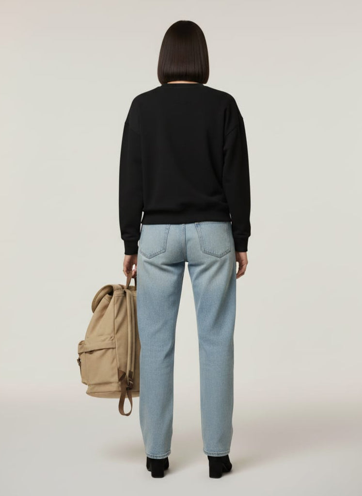 Black Graphic Sweatshirt – Casual Oversized Fit, Long Sleeve Pullover